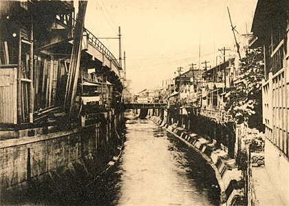 「宅地化が進むと、地下浸透させることで一時的に水を蓄えることができた田畑や森林が姿を消します。また、舗装されることで、地面の保水力はいっそう低下してしまいます。谷が深く、複雑に屈曲した支流を多く持つ渋谷川では、そうした要因による水害が多発するようになりました。そのために、大正に入ると水路を直線化する河川改修が進みます。古川では1925年(大正14)に、渋谷川の宮益橋から現・天現寺橋付近までの区間では1931年(昭和6)に改修工事が行なわれました。これにより、渋谷川はコンクリート三面張りの川になってしまいました。渋谷駅から上流の区間でも、1935年(昭和10)以降、改修工事が進められました」