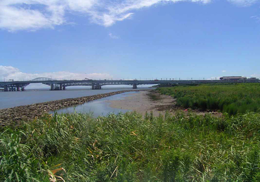 「右岸側に2005(平成17)〜06年(平成18)に造成した新砂干潟があります。それまでは人工的な護岸でしたが、試験的に人工干潟を造成しました」