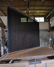 「大判の紙、と一言で言いますが、漉くための簀(す)も乾かすための道具も、工夫して考えなくてはなりません。紙漉きでは紙料が入った漉き舟に簀を入れて、原料の繊維を掬うわけですが、大きな簀は動かすことができませんから、固定した簀に紙料を流す方法で漉きました。漉いた紙を乾かすのに、祖父は漆喰でかまぼこ型の小山をつくり、それに貼って乾かしています。中で薪が焚けるようにして、韓国のオンドルのようにして乾かしたといいます。